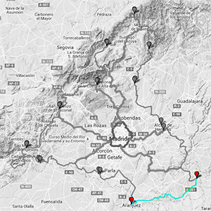 Etapa que se inicia en Estremera, el municipio más oriental de la Comunidad de Madrid, y que coincide en una parte con el camino de Uclés. Comienza hacia el sur, pero pronto va tomando dirección oeste y circula paralela al Tajo y al límite sur de la Comunidad, coincidiendo en parte con el Camino Natural del Tajo primero y luego con el Camino Natural del Canal de Estremera. Atravesamos Fuentidueña de Tajo, Villamanrique de Tajo, Colmenar de Oreja y el Cortijo de San Isidro, para acabar en Aranjuez, ciudad Patrimonio de la Humanidad. Como se puede intuir por el nombre de las poblaciones que vamos dejando a nuestro paso, el río Tajo es el hilo conductor de esta etapa, acompañándola (aunque a cierta distancia) desde prácticamente el inicio hasta Aranjuez.